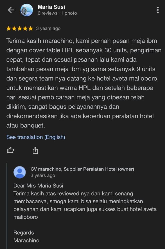 Jika Anda mencari meja banquet khusus hotel dengan kualitas terbaik dan harga yang kompetitif, CV Marachino adalah pilihan yang tepat. Dengan berbagai pilihan desain, layanan unggulan, dan komitmen terhadap kepuasan pelanggan, kami siap membantu Anda menyediakan meja banquet yang sesuai dengan kebutuhan hotel Anda. Hubungi kami sekarang juga untuk konsultasi dan penawaran harga terbaik.
