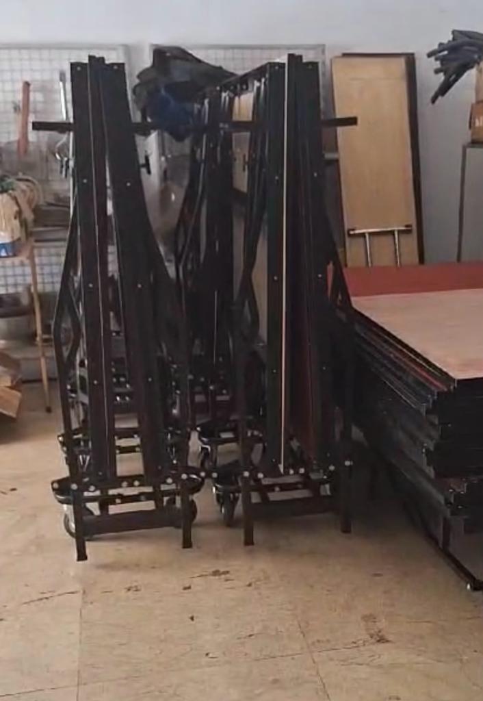 Salah satu keunggulan visual dari stage lipat adalah bentuknya saat dilipat. Panggung ini bisa berdiri tegak secara vertikal, menyerupai bentuk lemari atau meja lipat. Dalam kondisi terlipat, satu unit panggung hanya memakan ruang sekitar 1m tebalnya, sehingga bisa disimpan di sudut ruangan, di balik sekat, atau di dalam gudang hotel tanpa mengganggu fungsi ruang lainnya.