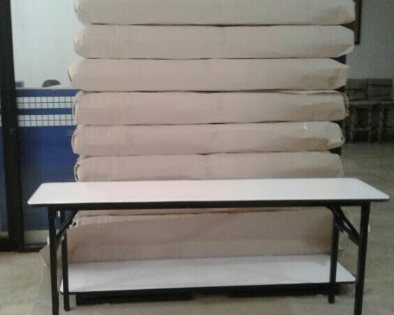 Mulai dari meja IBM, round table, hingga panggung lipat tersedia dalam berbagai ukuran dan variasi.